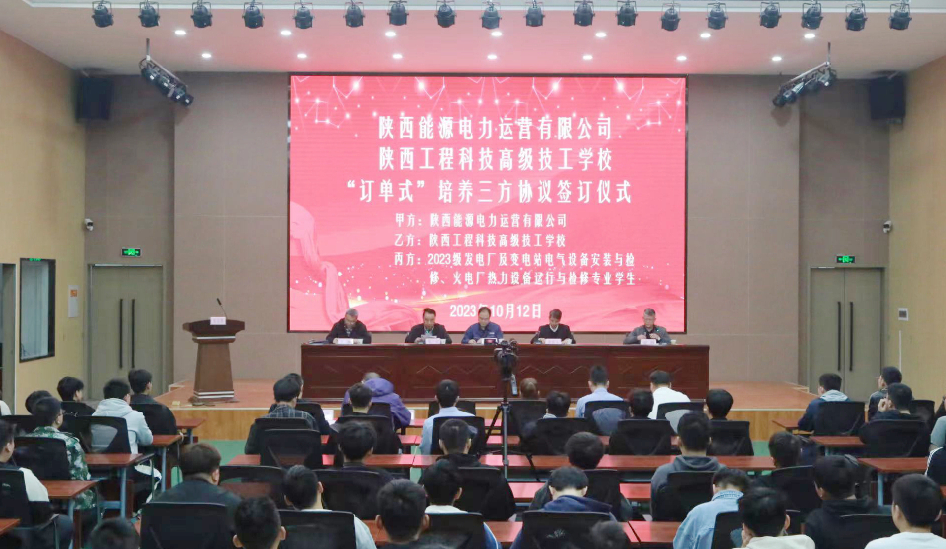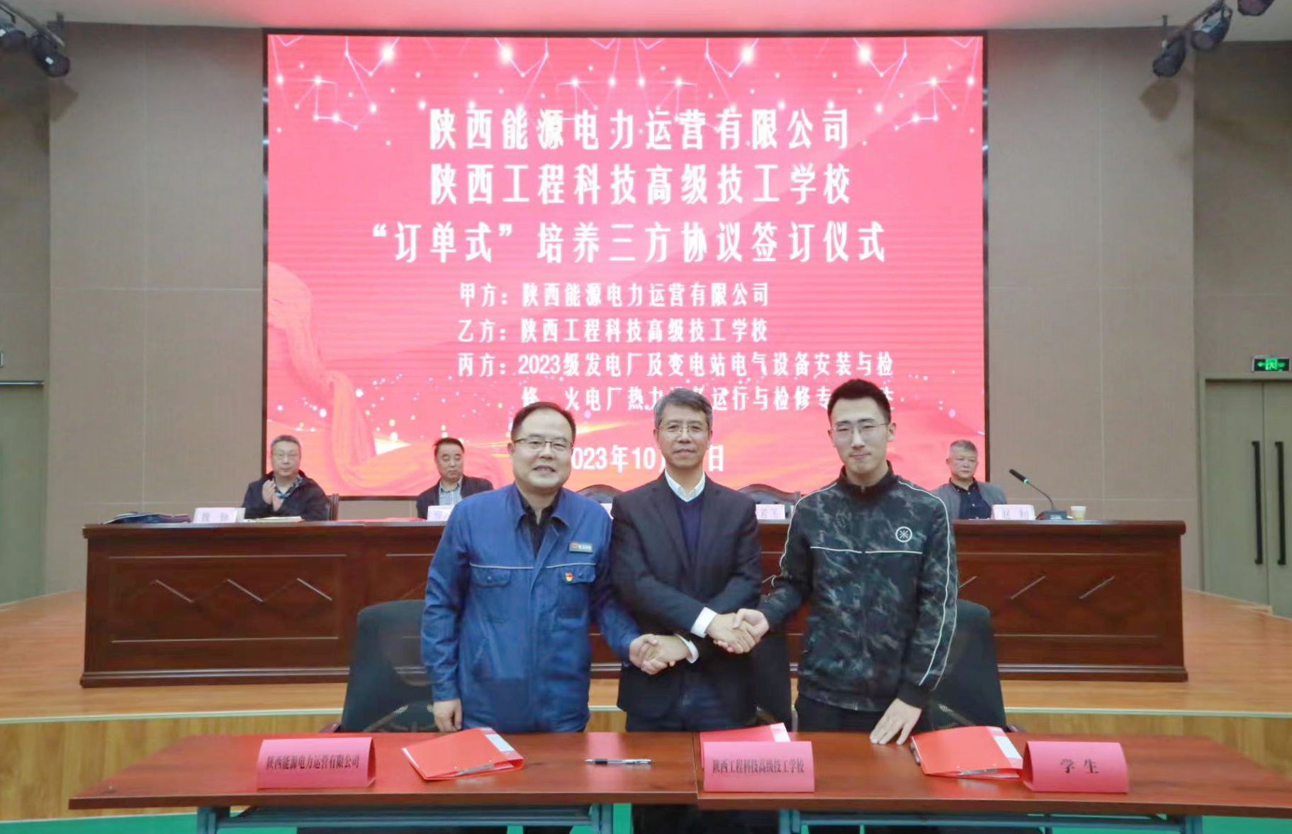 10月12日,公司與陜西工程高級(jí)技工學(xué)校舉辦電力運(yùn)營《“訂單式培養(yǎng)”三方協(xié)議》簽字儀式。公司黨委書記、董事長毛冬紅,陜西工程高級(jí)技工學(xué)校黨委負(fù)責(zé)人、校長李若飛及教職工代表、學(xué)生共計(jì)120余人參加,儀式由陜西工程高級(jí)技工學(xué)校副校長趙利主持。